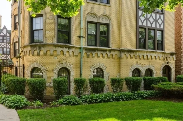 Welcome to "The Castle" a charming courtyard building with a vibrant manicured garden. This lovely Ground floor unit offers full sized vintage windows, freshly painted throughout, newly refinished Hardwood floors, Brand New Whirlpool Stainless Steel appliances in the kitchen, granite countertops and 42" inch cabinets. Separate dining room. Bathroom has brand new fixtures, a reglazed tub along with new sink and cabinet. Steps out your back door is a large storage unit and Laundry area. Plenty of street parking available. A couple of blocks from the Blue Line, CTA & Metra Station and I-90-94 expressways. Also surrounded by wonderful restaurants and lots of Green space.